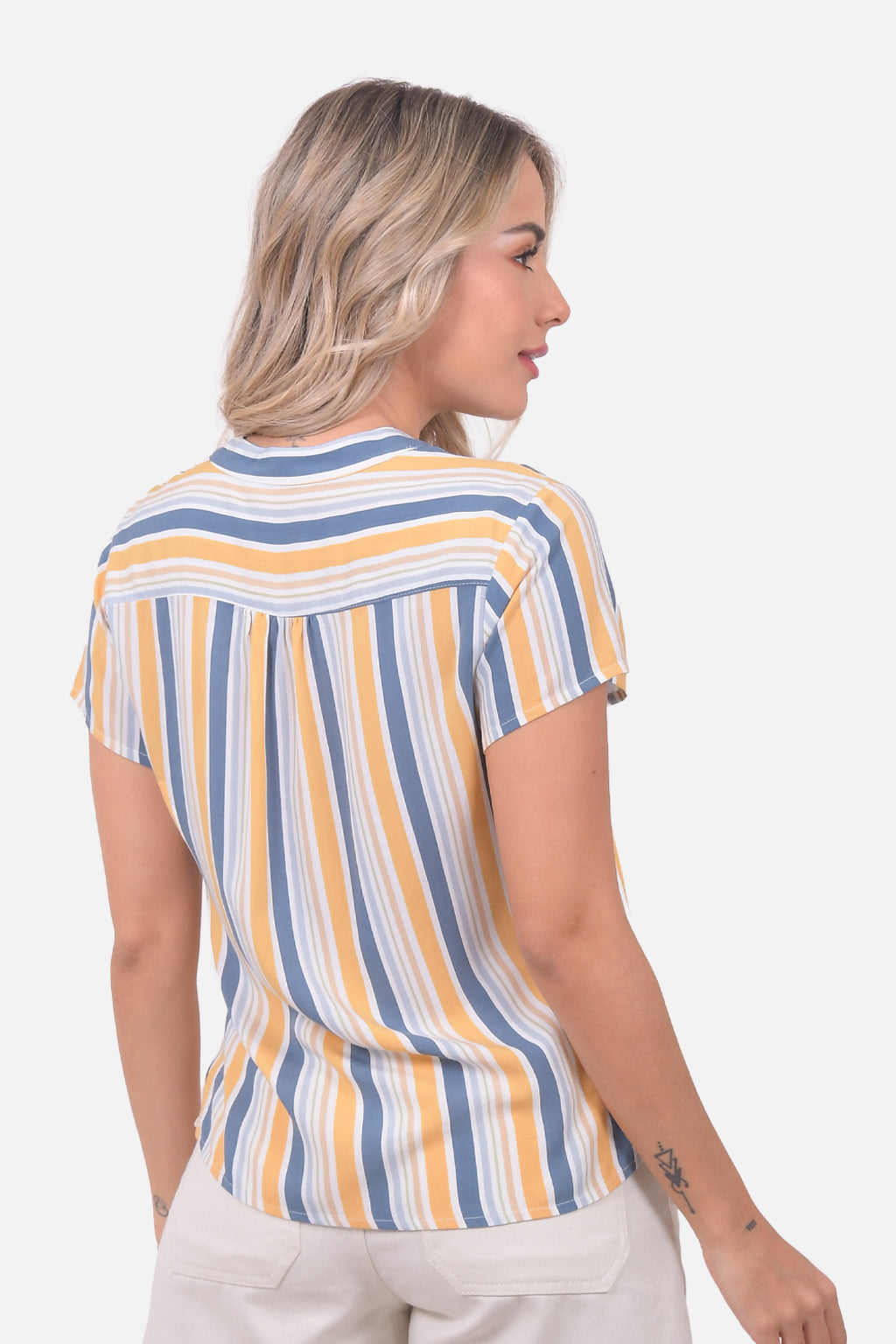 Instrucciones de lavado: lavar a mano con agua fria, no dejar en remojo, no usar cloro, no retorcer, lavar con colores similares, secar a la sombra, planchar con temperatura media, no planchar los estampados.